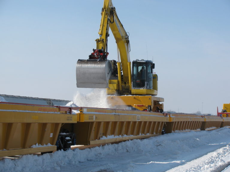 After unexpected snowstorms, Herzog can clear and haul away snow In space-constricted areas such as platforms or yards to maintain normal operations.